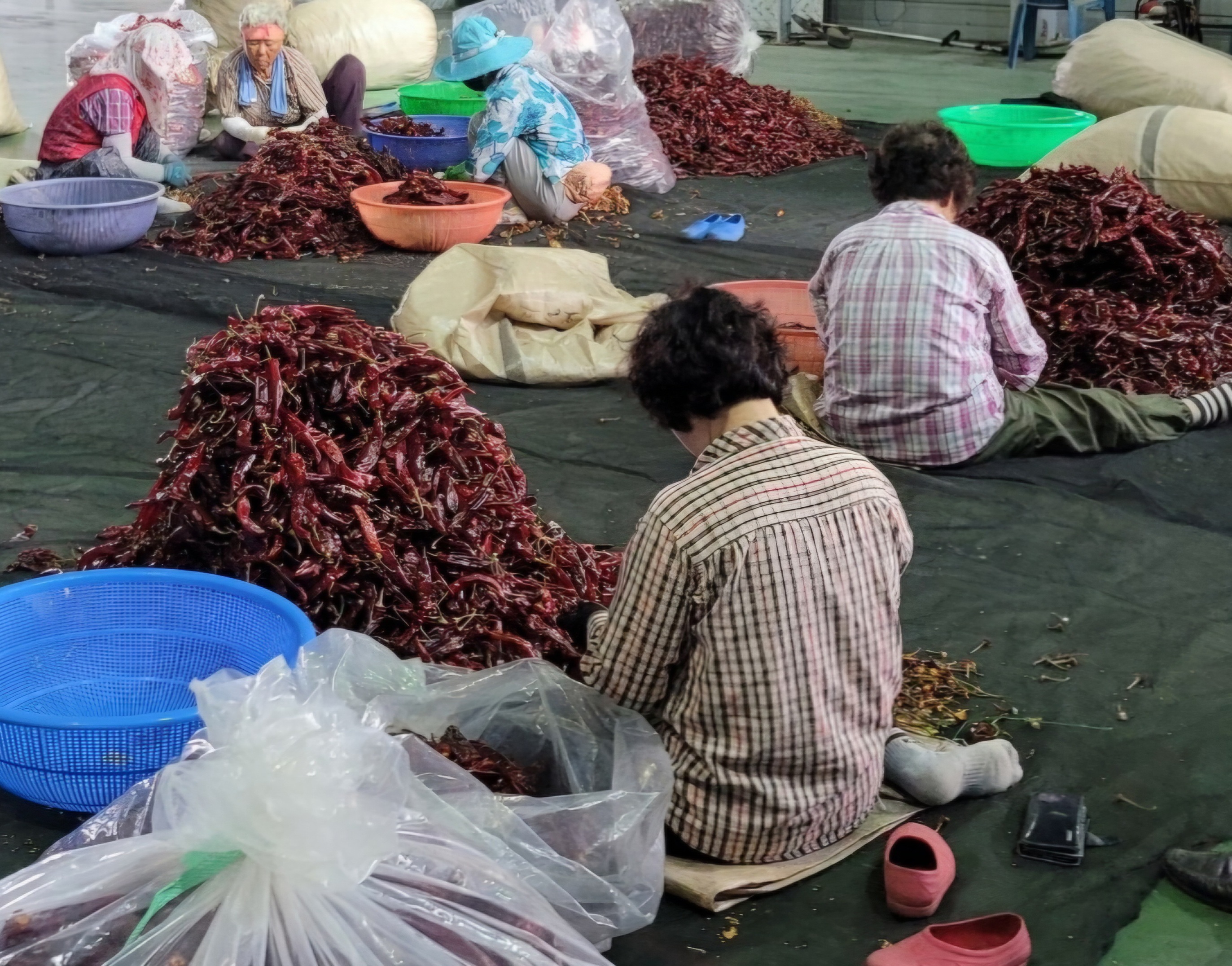 ➡️고추 꼭지를 수작업으로 딴다는 것이
