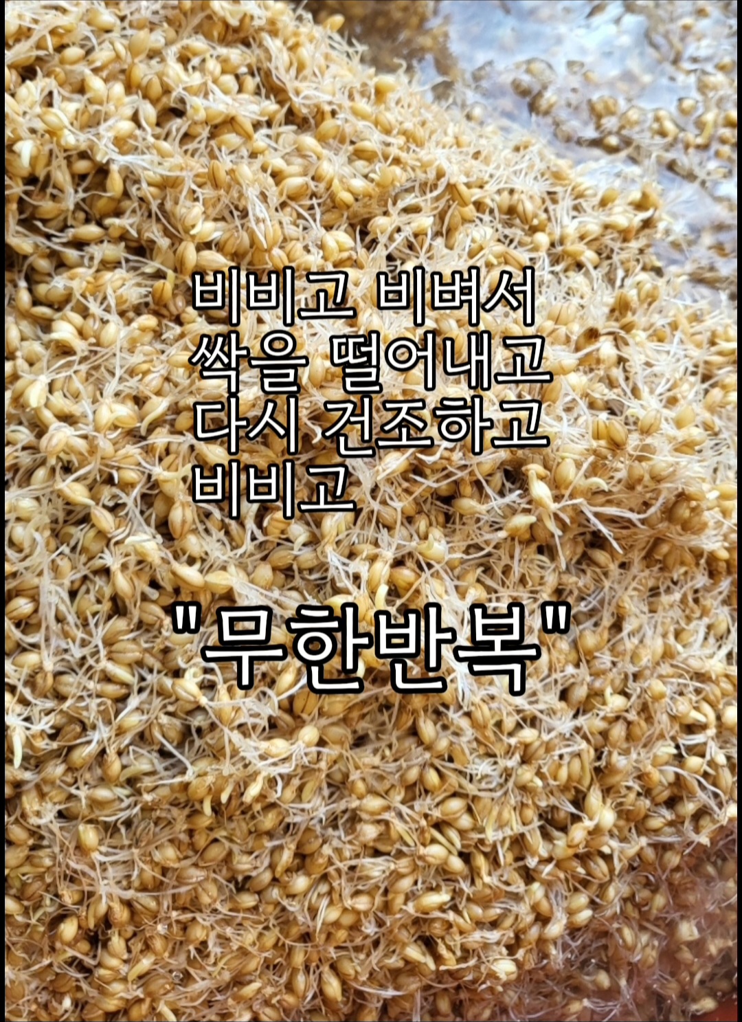 비비고 비벼서 싹을 떨어 내고